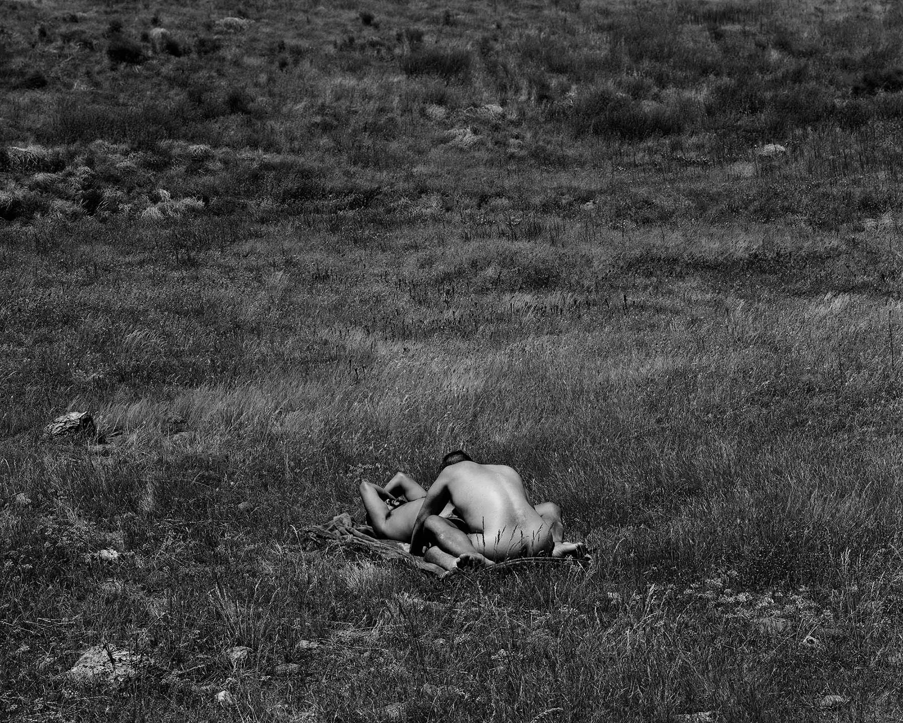 In Heaven is a Prison, McKnight describes a queer otherworld that is at once utopic and purgatorial – occupied by a solitary pair of copulating, Sisyphean protagonists that appear both liberated and bound by their intimacies, and the severe expanse in which they are depicted.
