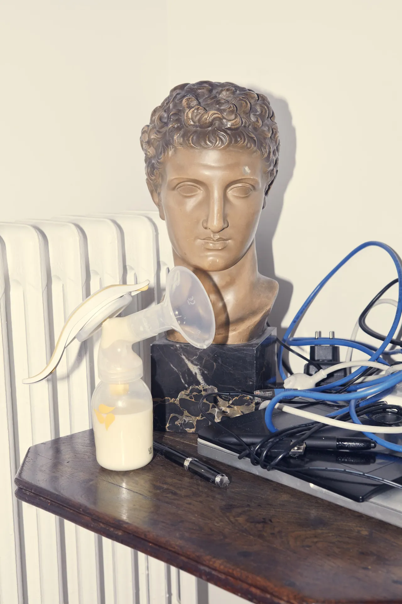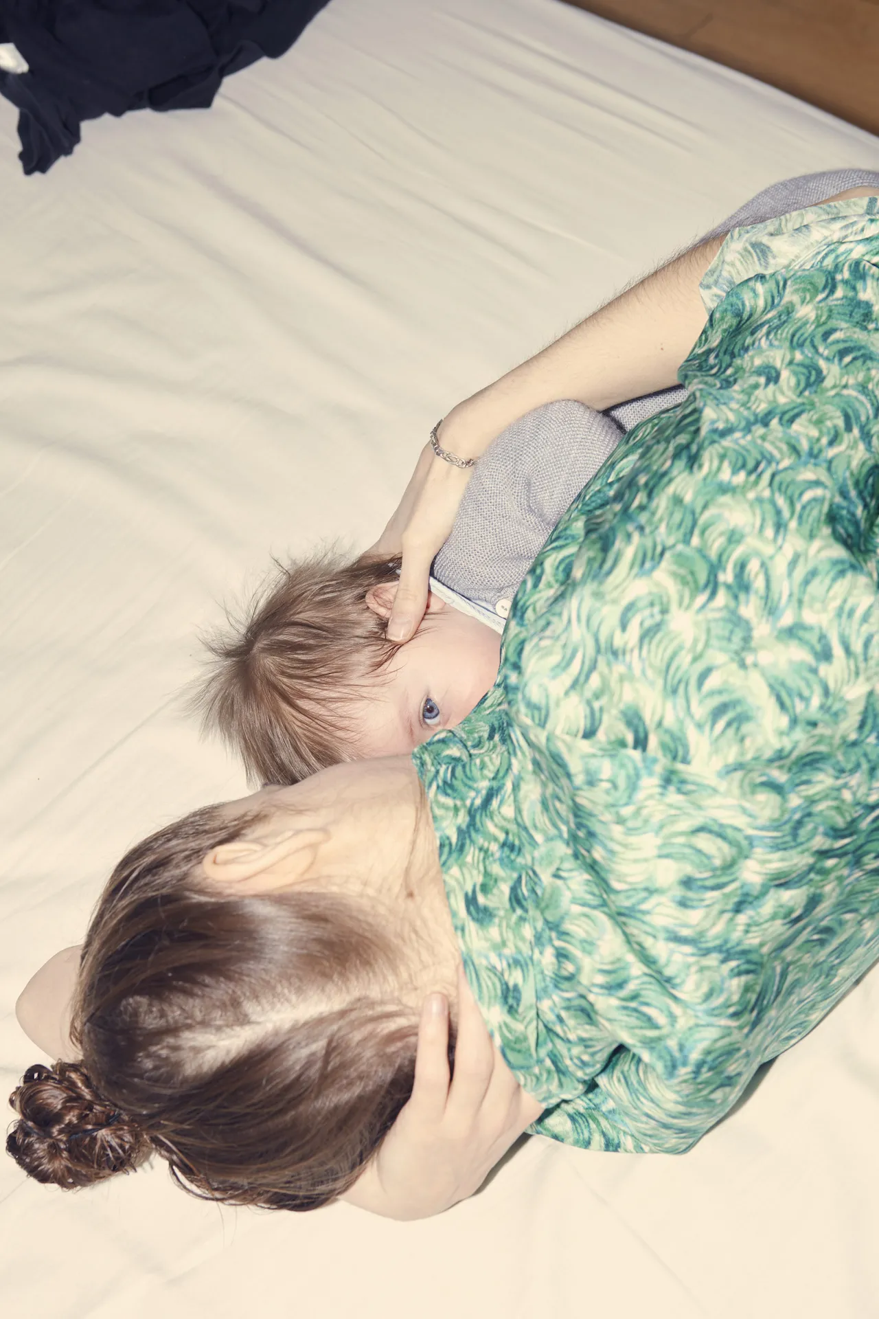 The aesthetic aspect is determined by the feeding behaviour which imposes its geometry on bodies and on space they occupy. These images contain familiar echoes of classic icons but adorn themselves with modern elements. From these everyday moments, seized with harshness, without bitterness, emerges the force of exchanges between two beings and the milk becomes, as in the Greek legend of the Milky Way, the vector of a world under construction.