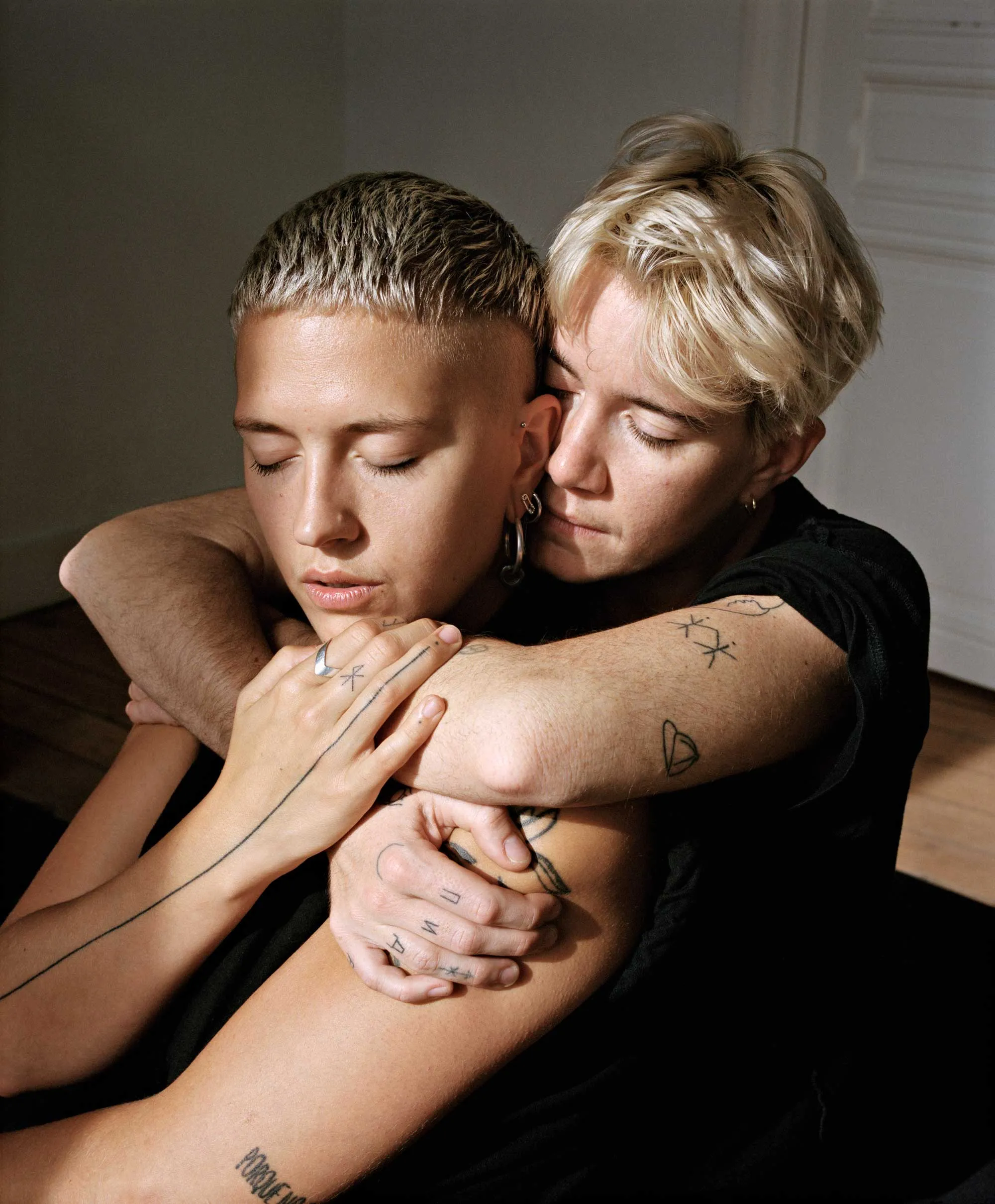 Anne-Sophie Guillet suggests with her Together series that we change our attitude and perception on various relationships types including love, friendships, sexual relationship and relationship with ourselves. We read in the artist statement: the social injunction imposes itself as an established norm with its heteronormative codes in our lives and in our relationships with others. Today, each individual creates their own model in order to find the best way that resonates with their soul. The people that agreed to pose for the series live their relationships outside the romantic love pattern. All of the individuals can be lovers, in polyamory relationships, trans or non binary peers, non labeled relationships, the spectrum is large and does not stop to that, it is only to name a few examples. Sentimental exclusivity and romantic love are valued components in our society. How would it be possible to redefine the contours of love relationship? How could we question the sentimental norm or stop to project our believes on others? Relationships shouldn’t be put in competition nor prioritised, they should co-exist, Anne-Sophie states.